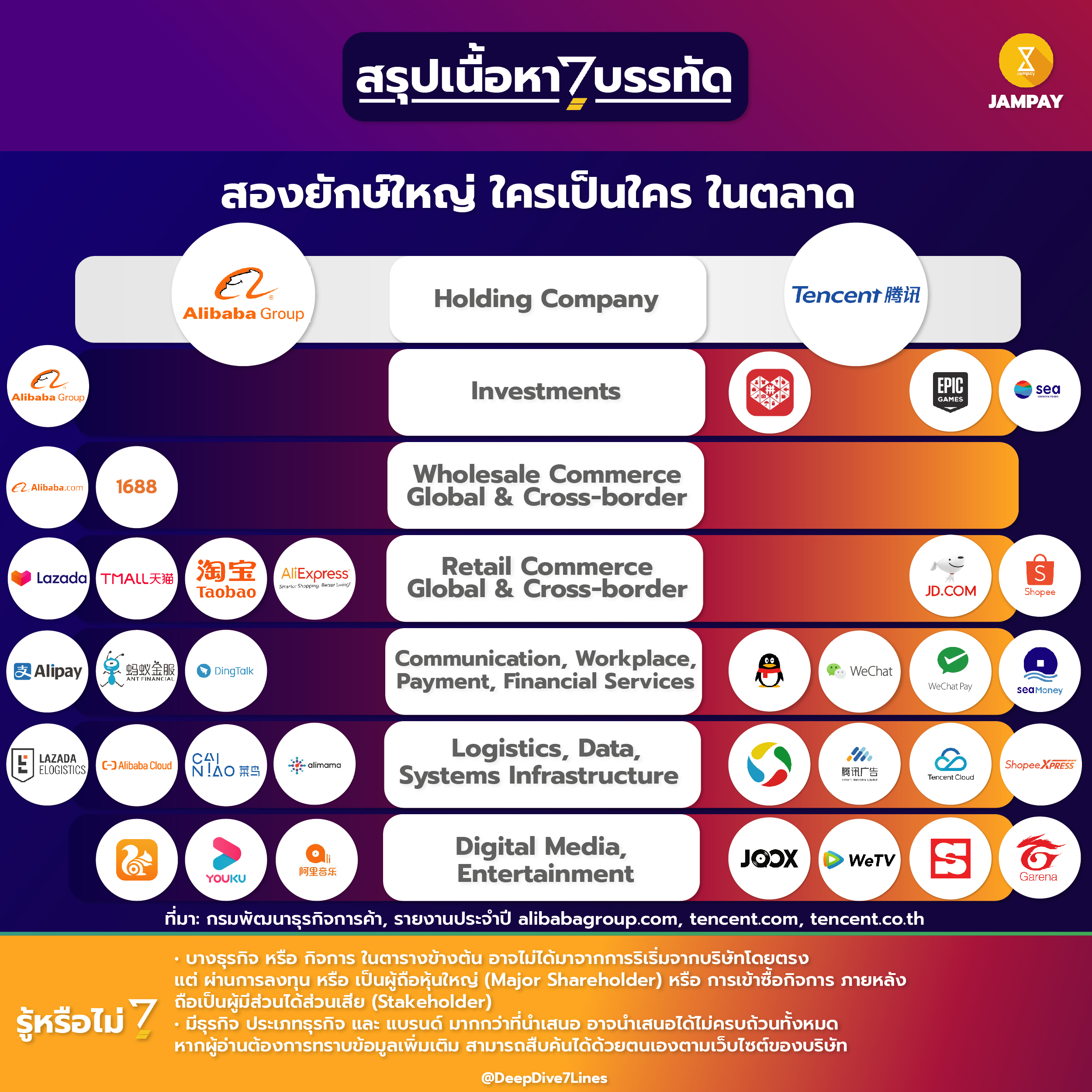 ทำไมต้องอธิบายกันยืดยาว นั้นก็เพราะ เรากลังจะสื่อสารว่า ดูเหมือนว่าสองยักษ์ใหญ่นี้ อย่าง “ลาซาด้า” กับ “ช้อปปี้” นอกจากจะกำลังแข่งขันภายในอุตสาหกรรมเดียวกัน (Industries) แล้ว ยังเป็นการแข่งขันกันระหว่าง Tencent (เทนเซนต์) และ Alibaba (อาลีบาบา) ด้วยเช่นเดียวกัน